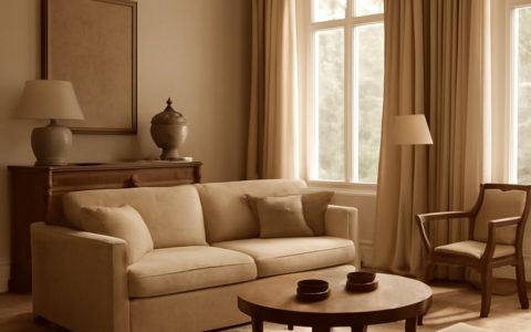 - Culori și accente: Paleta de culori este subtilă, predominând tonuri neutre și pasteluri, pentru a accentua liniștea și echilibrul vizual.